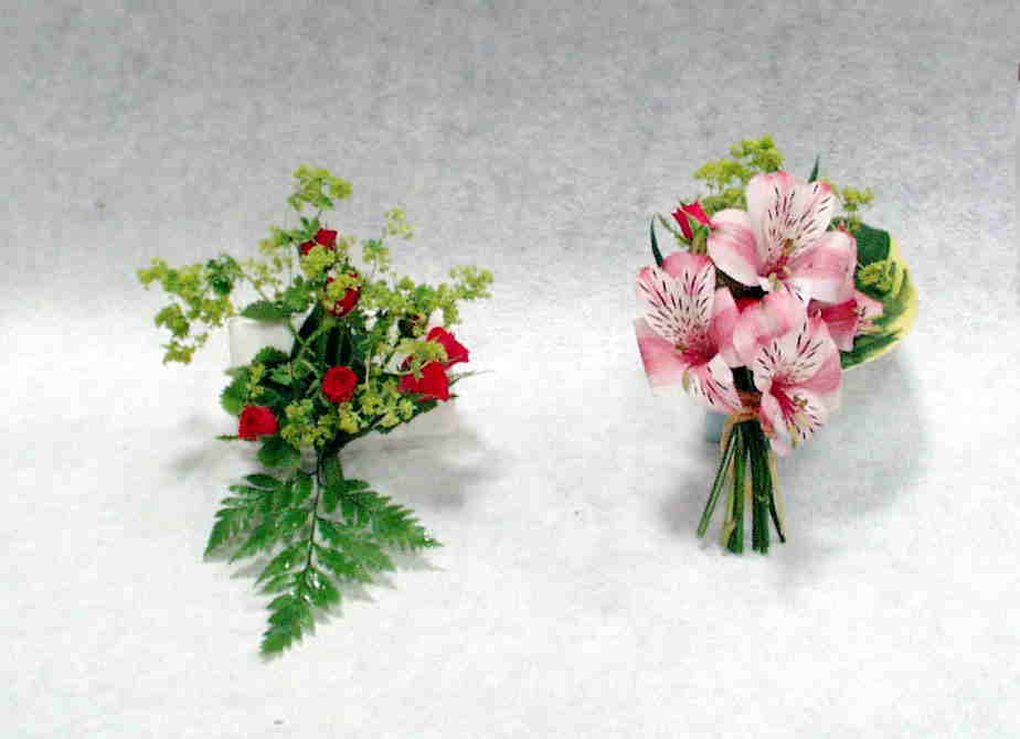 向かって左・・・ナチュラルステムコーサージ(ワイヤーを使って作ったコーサージ)