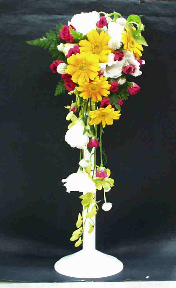 ロココボケーは多種多色の花を使って作る華やかなブーケです。 下方に流れる花が美しいブーケです