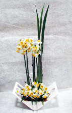 左&中:季節の花(水仙)がとてもいい香りで春の足音が聞こえてきます水仙一種のアレンジメントのデザインです。