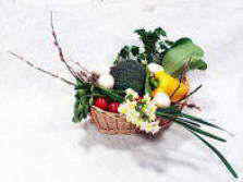 野菜と花のアレンジメント(野菜の色や形をいかしてデザインします。)