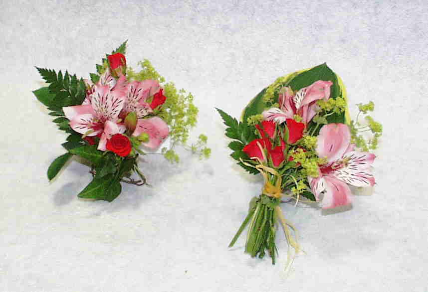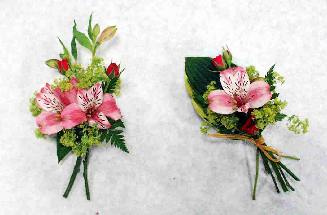向かって左・・・ナチュラルステムコーサージ(ワイヤーを使って作ったコーサージ)
