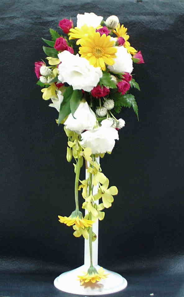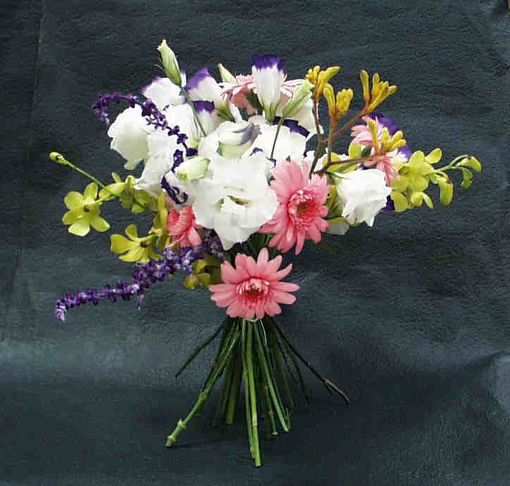 ロココボケーは多種多色の花を使って作る華やかなブーケです。 下方に流れる花が美しいブーケです