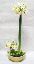 左&中:季節の花(水仙)がとてもいい香りで春の足音が聞こえてきます水仙一種のアレンジメントのデザインです。