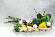野菜と花のアレンジメント(野菜の色や形をいかしてデザインします。)