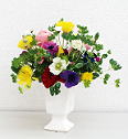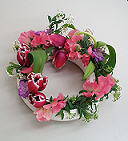 カルチャーセンターの皆さんの作品です。左:ドイリーのアレンジメント。ラウンドのアレンジメント。
